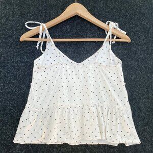 Papaya Womens Babydoll Tie Straps Camisole Tiered Cropped Tiny Heart Print