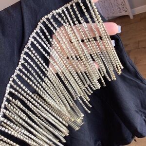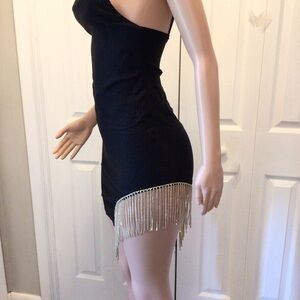 Papaya Womens Black Rhinestone Tasseled Mini Bodycon Dress Size Medium. Very good condition. Model photo to show fit only. Tassels are more of a gold/silver-tone mix, not solid silver as shown in 1st model pic. From smoke free home.
