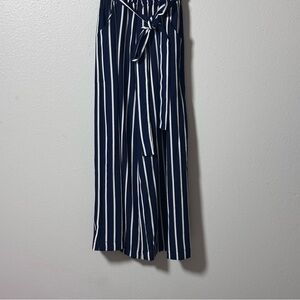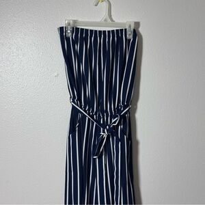Papaya Women's Blue/white Stripe Jumper Crop Palazzo Strapless Belted Small