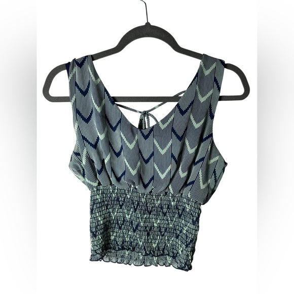 Papaya Women’s Smocked Crop Top Medium Blue Green Chevron Print Sleeveless