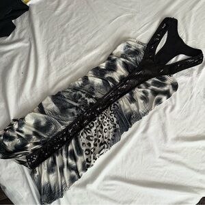 Papaya Y2K animal print and sequin ruched Dress stretchy size Medium
