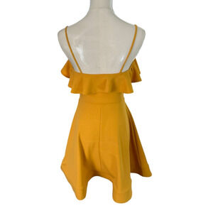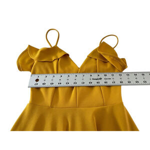 Papaya Yellow Ruffle Skater Mini Dress Small Spaghetti Straps Made in USA