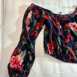 Papaya floral boho cropped cold shoulder elastic feminine flirty. Cold shoulder, two open areas on sleeves. Size Medium