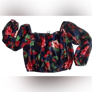 Papaya floral boho cropped cold shoulder elastic feminine flirty. Size Medium