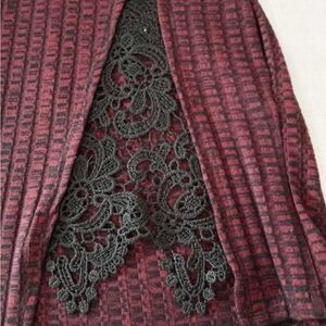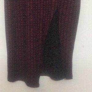 🌞 Papaya maroon sleeveless bodycon midi dress black lace in slit Made in USA M