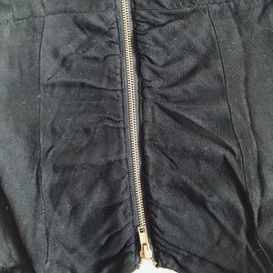 With pockets on the sides and zipper on the front