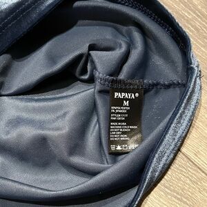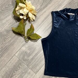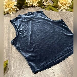 Papaya sleeveless blue velvet velour mock neck crop top. Size M