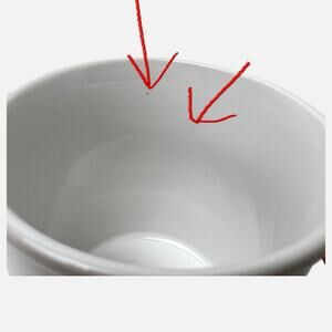 Pre-owned. Nice clean condition. Some small speck marks and a glaze pinhole, as manufactured. See photos. Overall well cared for red shoe mugs ready for you to use and enjoy.