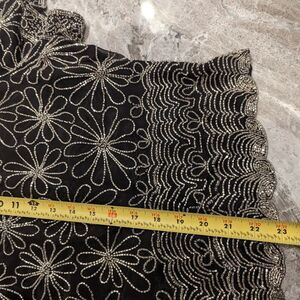 Papell Boutique Evening 100% Silk Black Fully Beaded Short Sleeve shirt Blouse L