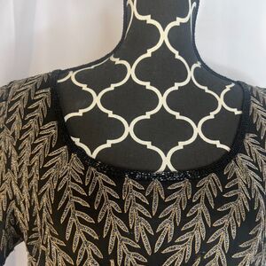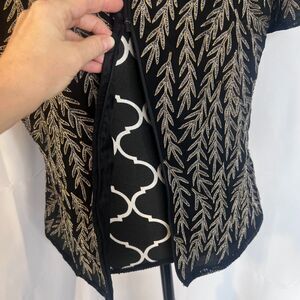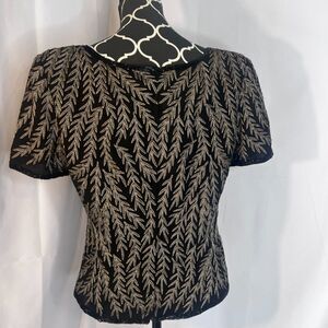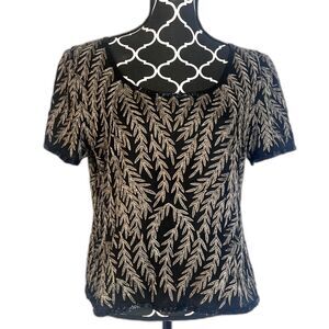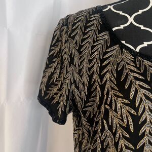 Papell Boutique Evening 100% Silk Black w/ Gold Leaf Beaded Cocktail Blouse MD