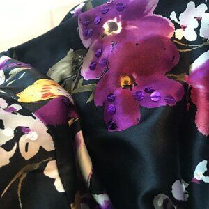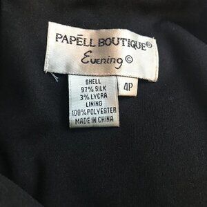 Papell Boutique Evening Black Silk Floral V Neck Dress Size 4P