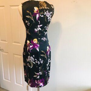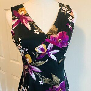 Papell Boutique Evening multicolor silk floral v neck midi dress