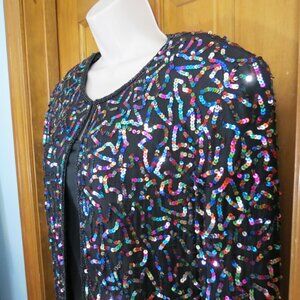 Papell Boutique Evening Black With Multicolored Sequin Jacket Evening Size XL