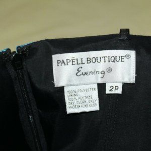 Papell Boutique Evening Dress Size 2P Petites. Strapless Dress, 100% Polyester On 100% Acetate Dry Clean Only 47" Long 15" Flat Across Pit To Pit. Wrinkled from storage. Listed as Midi length subjective to your own height where it will sit. All comes Exactly as shown with all shown, with exception to props and mannequins.