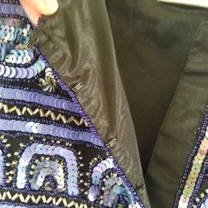 Papell Boutique Evening Womens Black Formal Blue and Silver Beaded & Sequin Silk Cocktail or Wedding Jacket