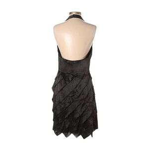 Papell Boutique Evening Halter Open Back Tier Satin Ruffle Mini Dress Size 6