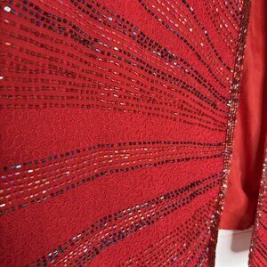 Papell Boutique Evening Silk Beaded jacket Size XL Evening Color Red and Black