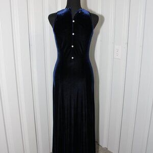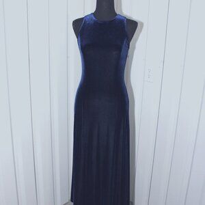 Papell Boutique Evening Womens Blue Velvet Tank Long Dress Tag Size 10 Fits 6