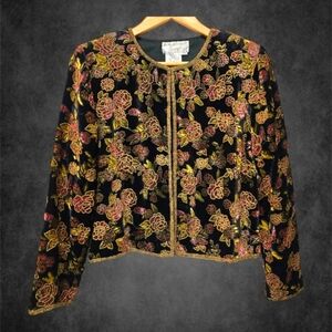 Papell Boutique Floral Embroidered Blazer - Black and Gold