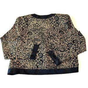 Papell Petites 100% Silk Jacket Women's Sz 8 Black/Gold Padded Retro Y2K VTG