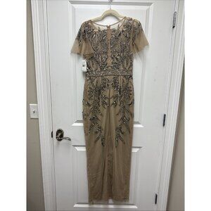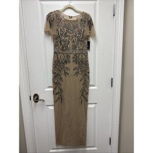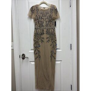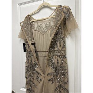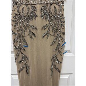 Papell Studio Size 6 Beige Formal Sequin Beaded Formal Dress Cocktail Gown NWT