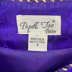 Papell Too Petites Vintage 100% Silk Jacket & Skirt Set Purple Size 6