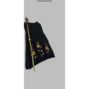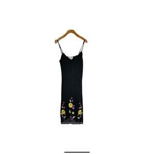 Papell Y2K Crochet Black Embroidered Beaded Floral Whimsigoth Fairy Slip Dress M