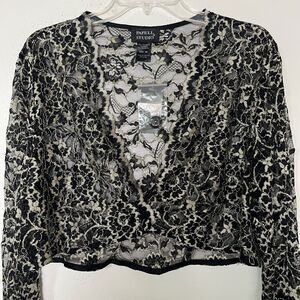 Papell Studio Whimsigoth Lace Formal Jacket Womens 1X Scalloped Sheer Bolero NWT
