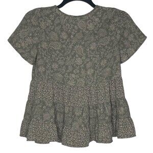Paper Crane Blouse Peasant Tiered Boho Size Small Floral Babydoll Short Sleeves