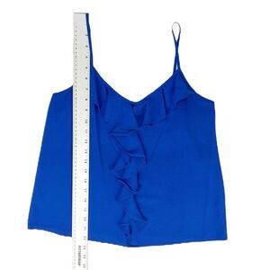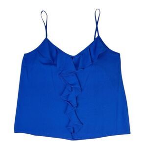 Super cute pre-owned Paper Crane Bright Blue Spaghetti Strap Tank Top Size Small. Ruffle Front. Adjustable straps. Light and breezy! No stains or holes. Please ask all questions before purchasing.
