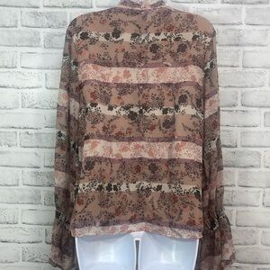 Paper Crane Choker Double Tie Sleeve Blouse Medium