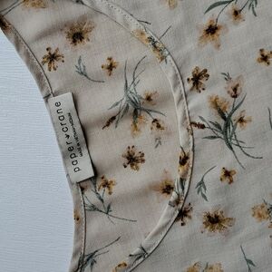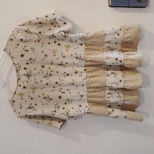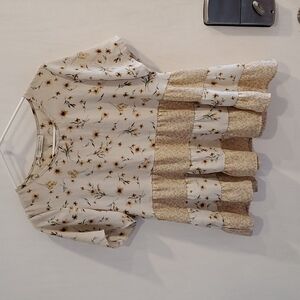 Paper Crane Cottagecore Neutral Tan Beige Yellow Floral Print Tiered Top M