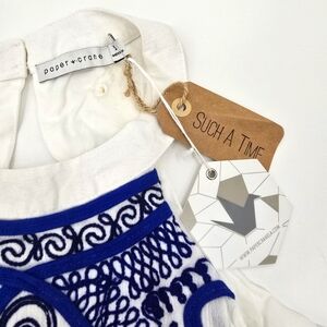 Paper Crane Embroidered White and Blue Women's Halter Top Size S