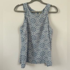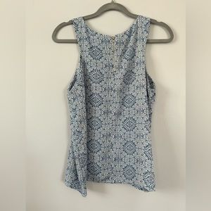 Blue and white patterned tank by Paper Crane. Gold zipper on back. Like-new condition.