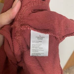This stylish tank top from Paper Crane features a vibrant red hue and a sleeveless design, perfect for warm weather. The top is adorned with a charming ruffled hem, adding a playful touch to its relaxed fit. Ideal for casual outings, it can be worn alone or layered for a versatile look.