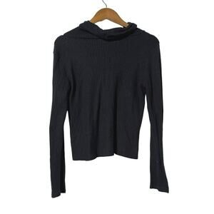Paper Crane Shirt Medium Waffle Knit Drawstring Neck Waffle Long Sleeve Black
