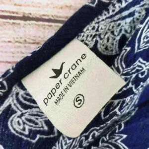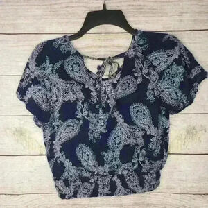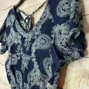 Paper Crane Short Sleeve Open Back Smocking Hem Paisley Top size small