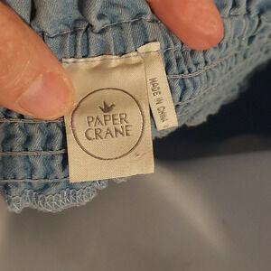 Paper Crane Smocked lightweight denim mini Tunic Sundress off shoulder M blue