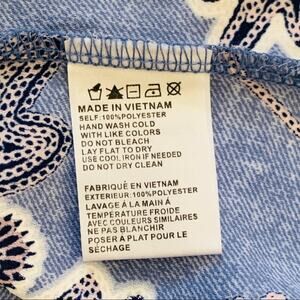 Blue floral print- fabric has a denim look but is not denim and very lightweight and flowy