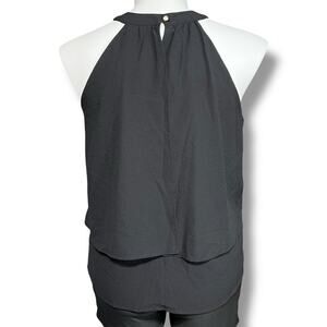 Paper Crane Womens Layered Blouse Shirt Halter Top Sleeveless Black Large