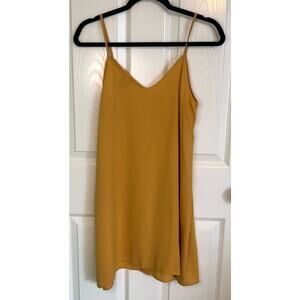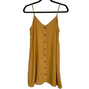 Paper Crane Women's Small Spaghetti Strap Golden Yellow Dress Button Front