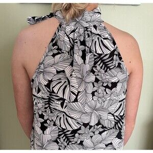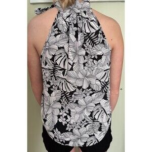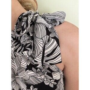 Paper Crane Women's Top Black/White Floral Pattern Ties at Neck Size Medium