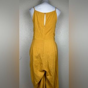 Paper Crane Yellow Linen Jumpsuit, Tie Front Jumper Size Large, Mustard Yellow