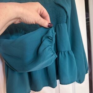 Paper Crane green blouse babydoll boho smocked prairie bohemian blouson cottage
