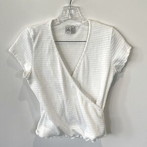 Paper Crane off white smocked crisscross short sleeve top. Women’s Medium