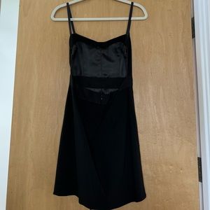 Sexy black minidress with an open back and bow clasp by Paper Crown.