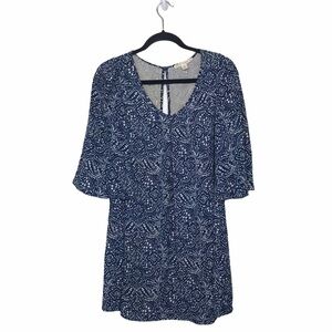 Blue and white printed, flowy dress with cropped bell sleeves and key hole back. Body is lined. Preowned but in great condition. XXS Petite