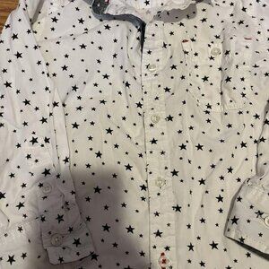 White long sleeved button down shirt with black star pattern. Excellent condition!