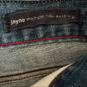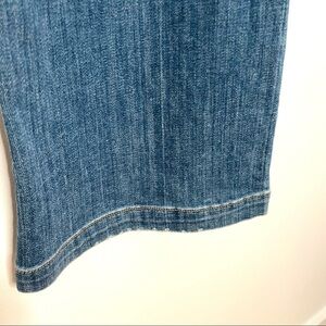 Factory distressed. Medium rise. Wide leg. Size 27/4. 15” waist. 34” inseam. 10” leg opening.