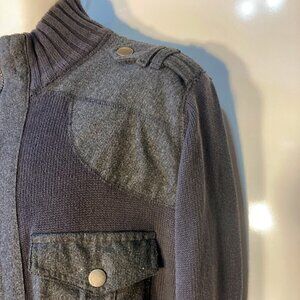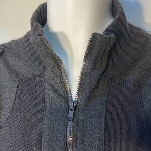 Paper Denim & Cloth SZ L Charcoal gray zip front sweater flannel detailing office casual